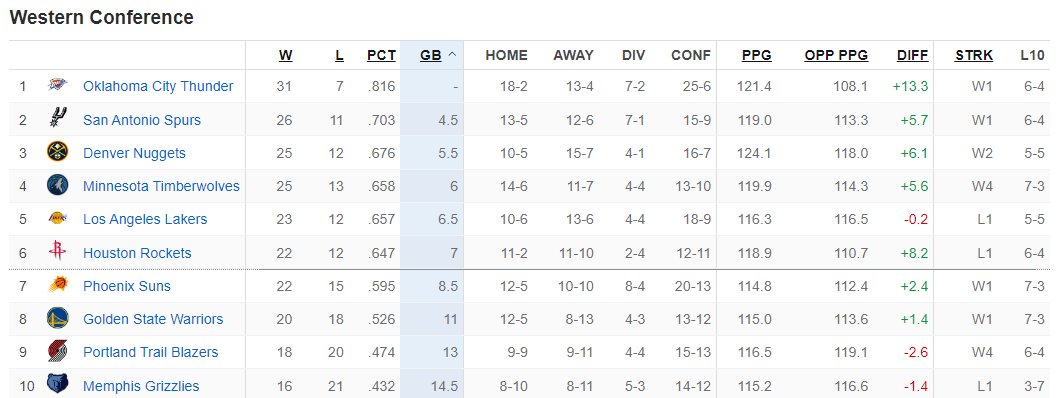 森林狼凭借这一波4连胜已经反超湖人升至西部第四的位置,火箭则掉至西部第六。